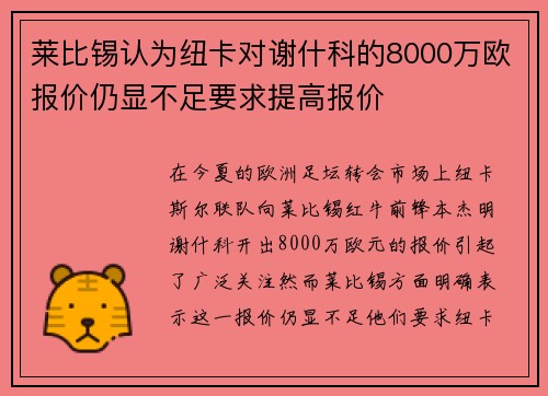 在经历了与曼联的激烈争夺后,纽卡斯尔联队最终未能签下 RB 莱比锡前锋本杰明・谢什科。根据转会专家罗马诺和斯基拉的最新消息,谢什科已决定接受曼联的报价,双方将签署一份至 2031 年的合同。这一结果意味着纽卡今夏的锋线补强计划遭遇重大挫折,而瑞典前锋亚历山大・伊萨克的离队可能性也随之大幅降低。 一、谢什科争夺战:曼联棋高一着 纽卡对谢什科的追逐始于今夏转会窗开启前。据《每日邮报》记者 Craig ...